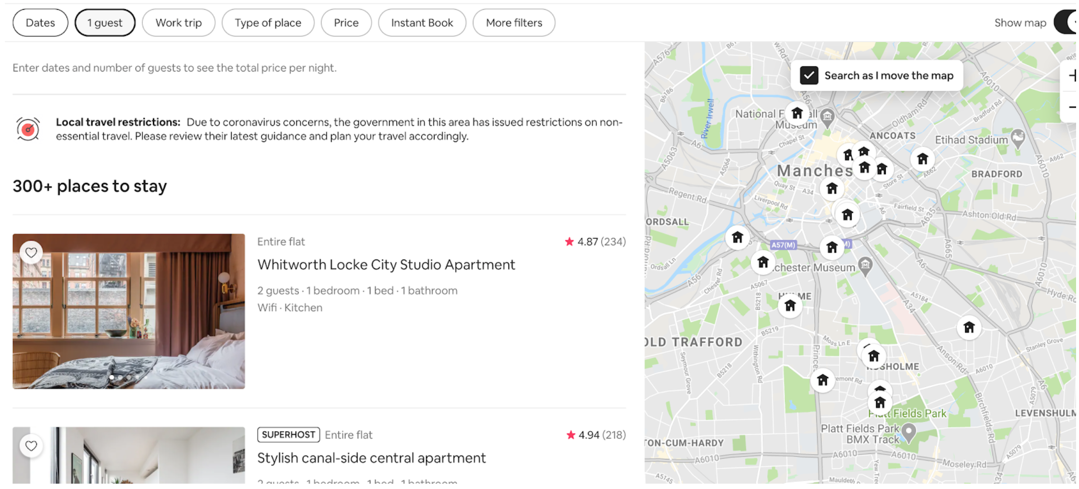 The methodology used here to search for the number of AirBnB properties is clearly open to interpretation and adjustment, but rather than attempting to identify an exact figure, it should be used as a point of discussion about the future Manchester wants to take in regard to its support of AirBnB properties. Furthermore, it is important to note that these results are only the properties now available to rent and not those for sale. This is an important distinction, as other AirBnB landlords may be choosing to put their properties up for sale or may be willing to leave them empty in the meantime, if they even are. On a normal search of AirBnb properties available at present (1 guest), there are still 300+ properties available within ‘Manchester Central’ alone.