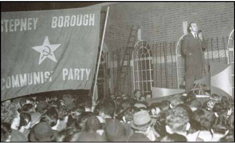 Phil Piratin speaking to crowds in Stepney in 1945.